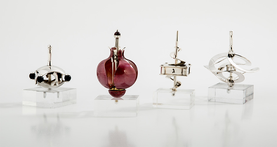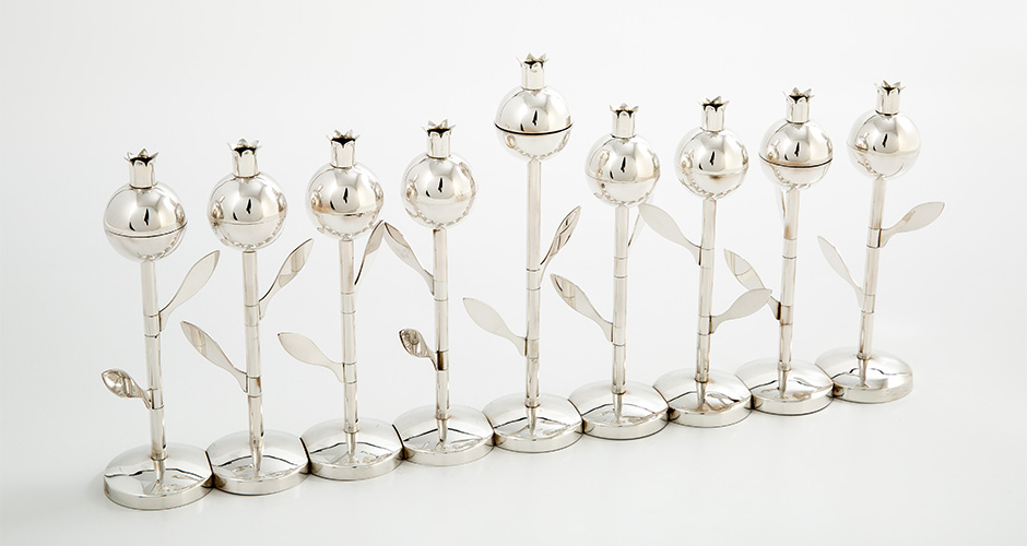 Gideon Hay has more than fifty years of experience in jewelry. Since 1963 he has done so in his studio at the Artists’ Colony of Jerusalem. His most popular products are Menorahs, Kiddush cups and Mezuzah. His great attraction to dreidels prompted him to create a large and exciting collection of tops, which is displayed in his studio.